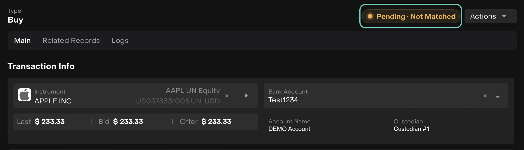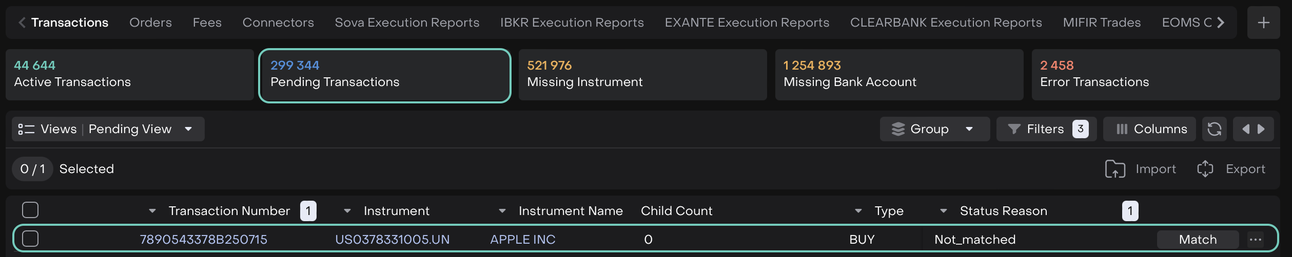 If successful – The status will change to Pending – Not Matched. You can then continue with your normal matching process.