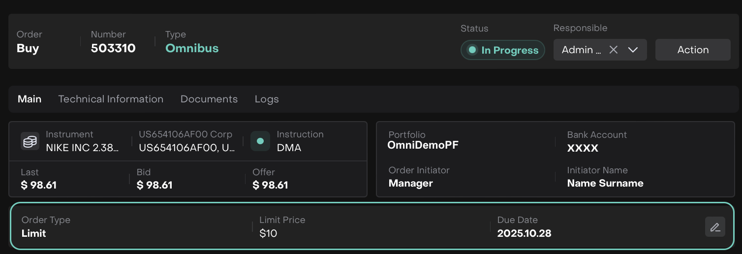 Omnibus Bank Account | Order Type and its related Price fields, Due Date |