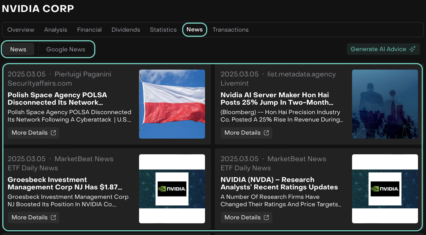 News Tab with AI Advice | News | View |