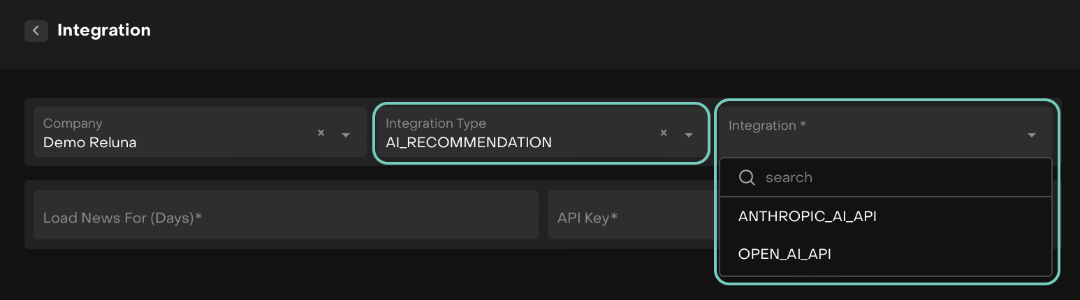 News & AI Recommendation Integrations