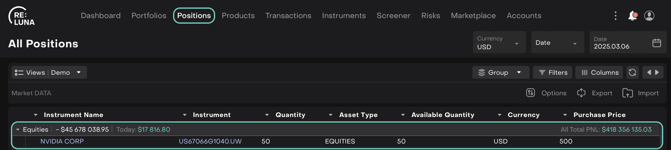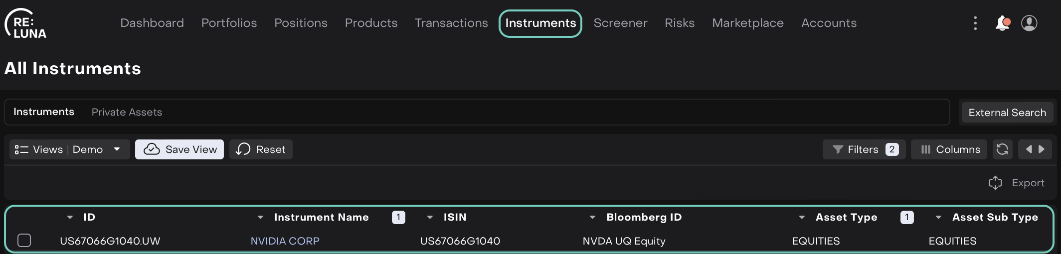 Navigate to an Instruments/Positions tab from the platform.