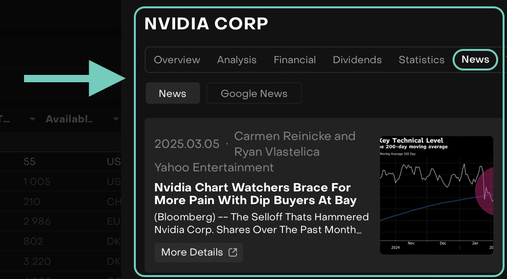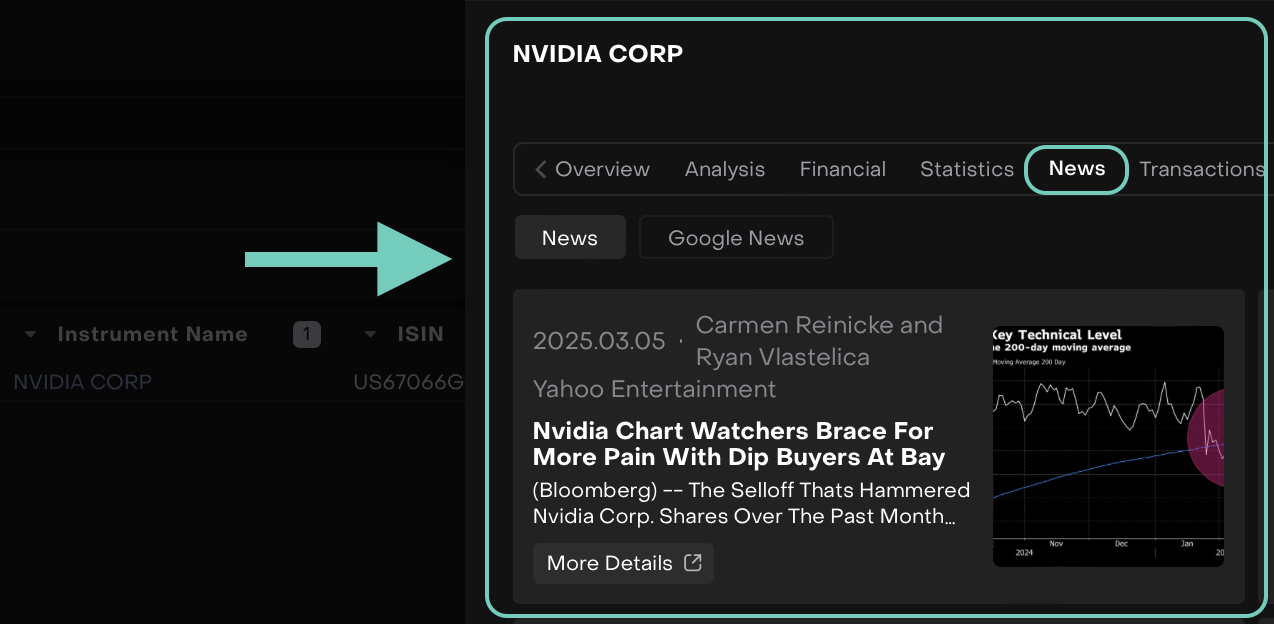 A new News tab has been added under Instruments/Positions tabs for EQUITY asset types only.