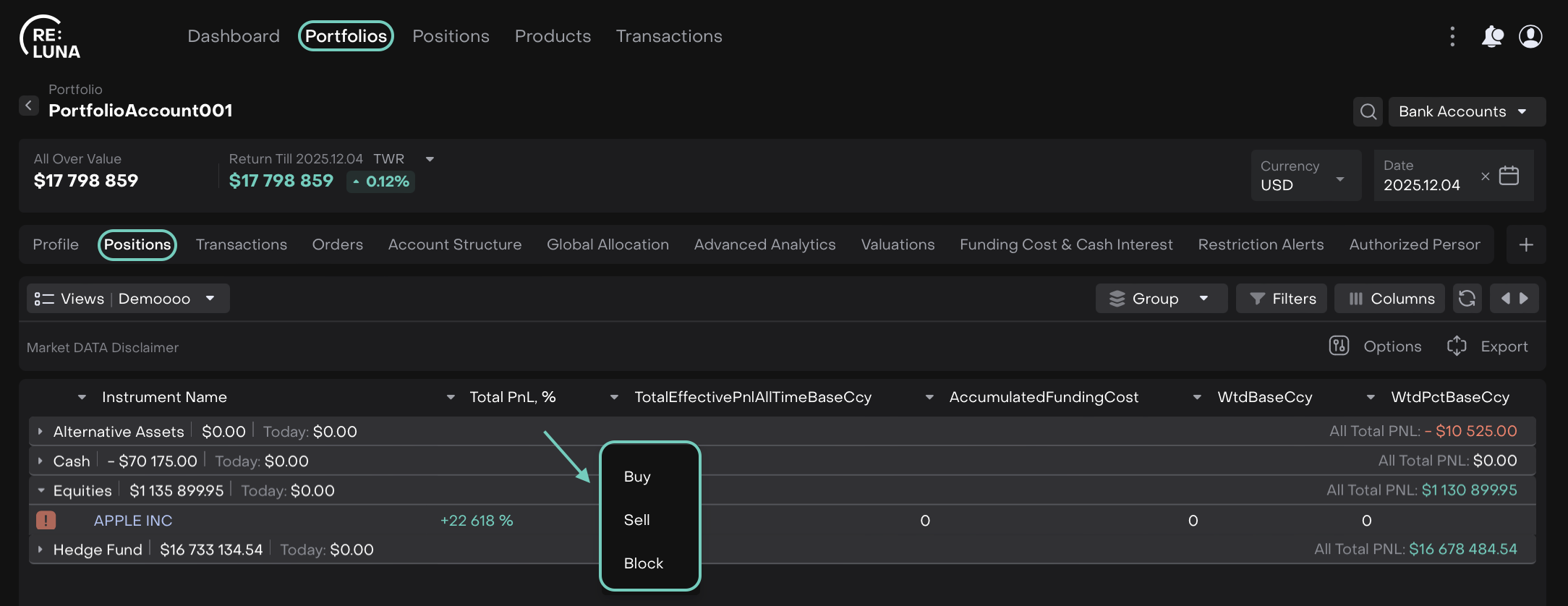 On Portfolios page > Find Positions tab > Right-click on Position.