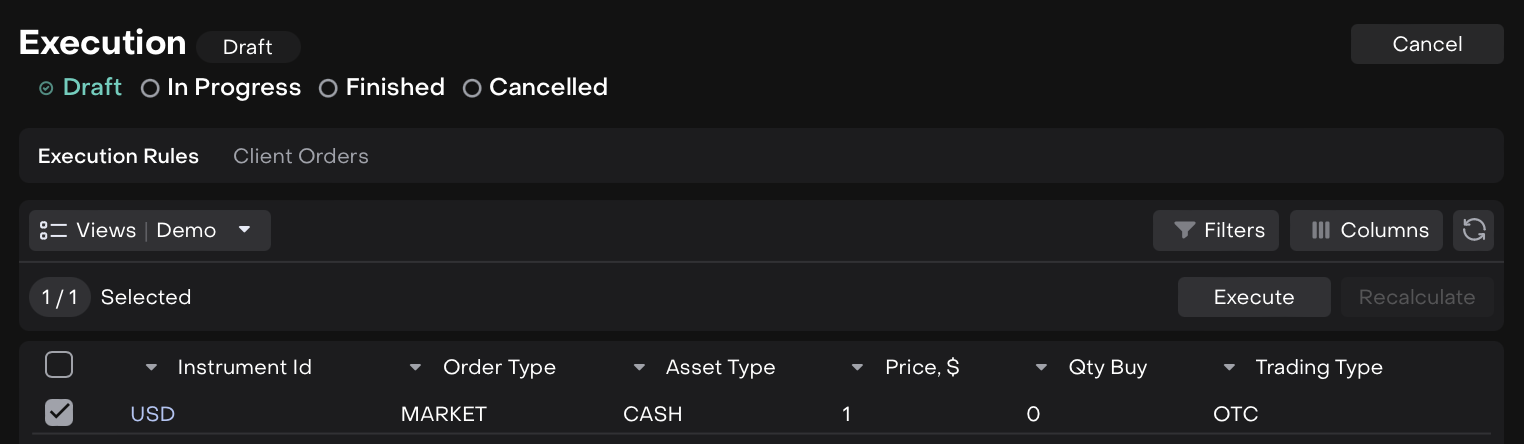 🔗 Learn more here on how to process with Execution Rules and Client Orders tabs.