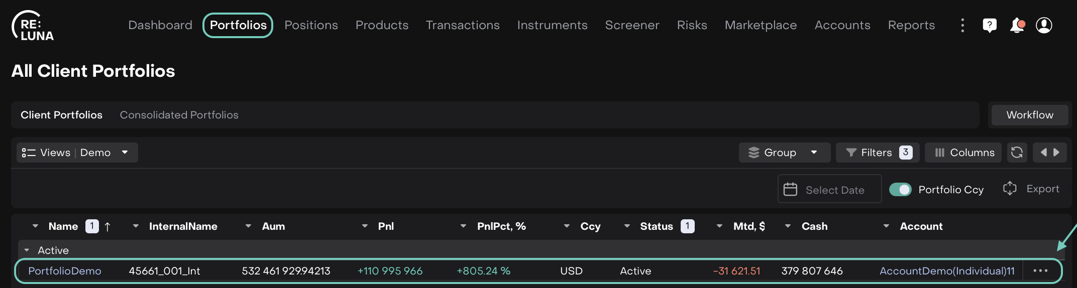 Go to Portfolio → select the desired portfolio, click on the "