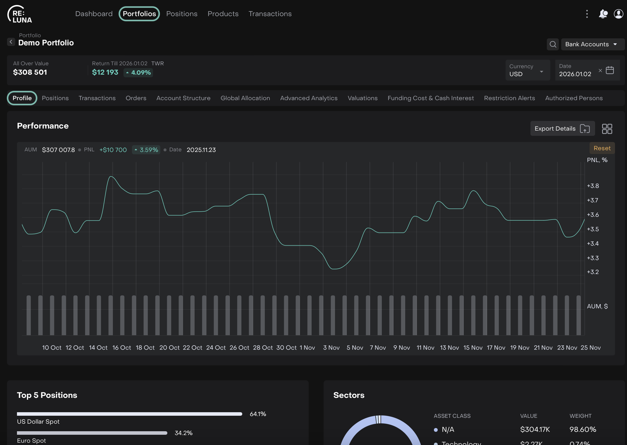 Top 5 Positions | The five largest holdings in your portfolio by value. |