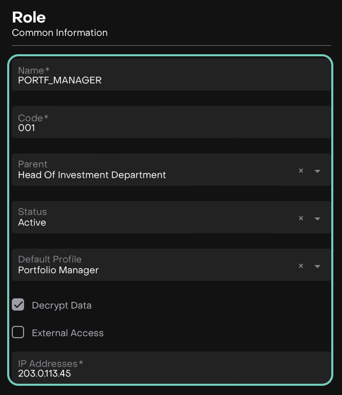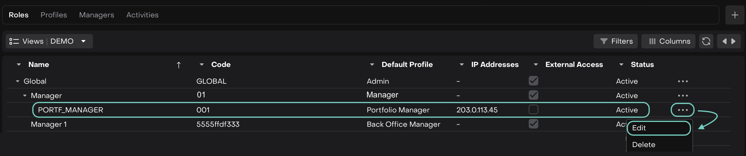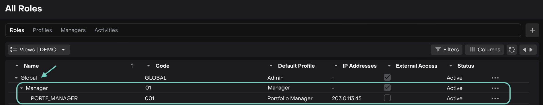 Client Role: The Client role is a default role that cannot be edited and has no hierarchical relationship with other roles. It is designed for client-level access, while the hierarchy applies mainly to managerial roles.