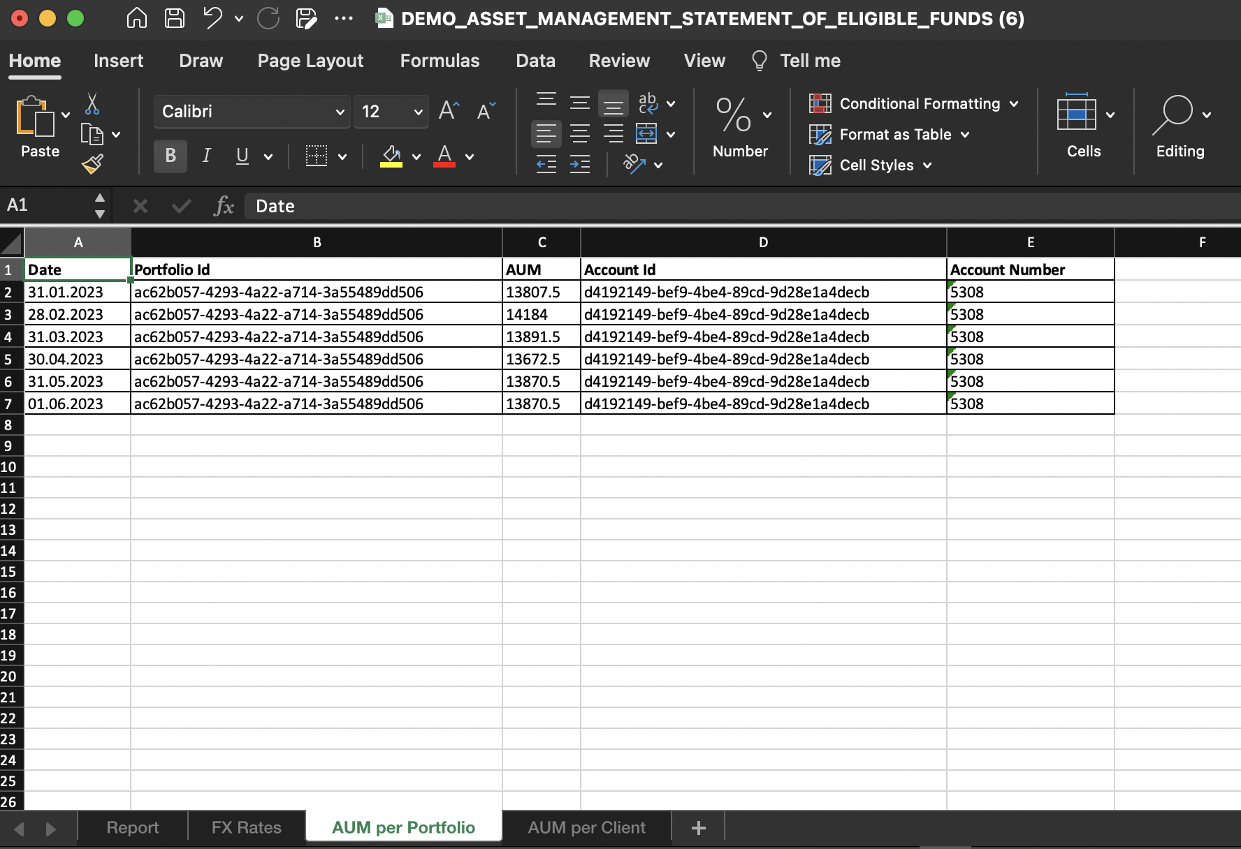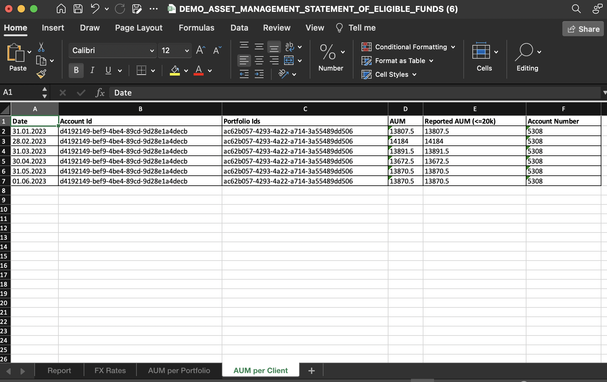 Eligible Funds | Monthly AUM amounts considered for the Statement of Eligible Funds report based on platform calculation logic. |