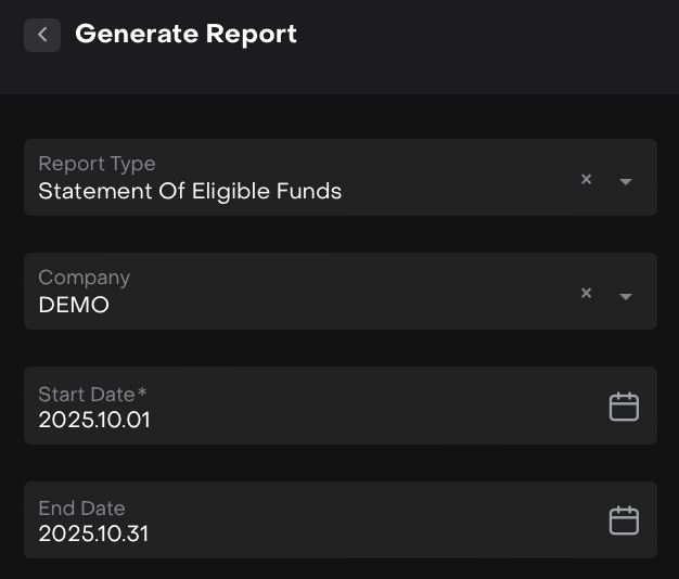 The Statement of Eligible Funds follows a specific calculation logic to ensure the results are accurate and regulatory-aligned.
