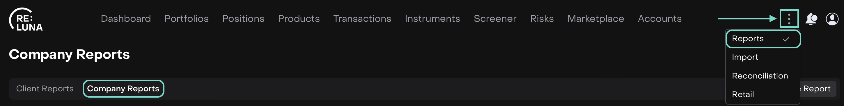 Company Reports | A section within Reports where you can generate business-level reports. |