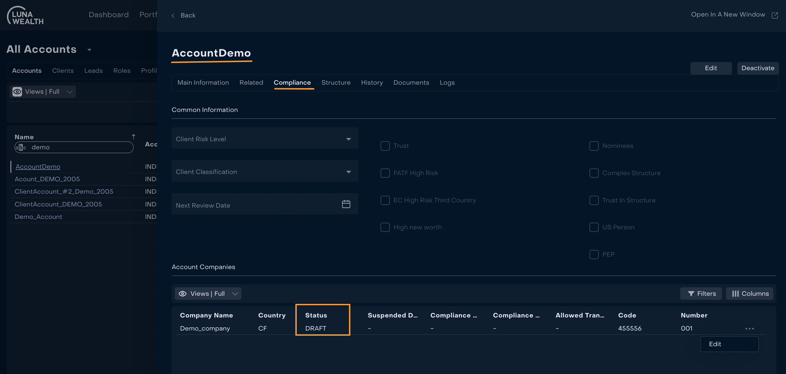 Added a field “Status” on Compliance tab of Account.