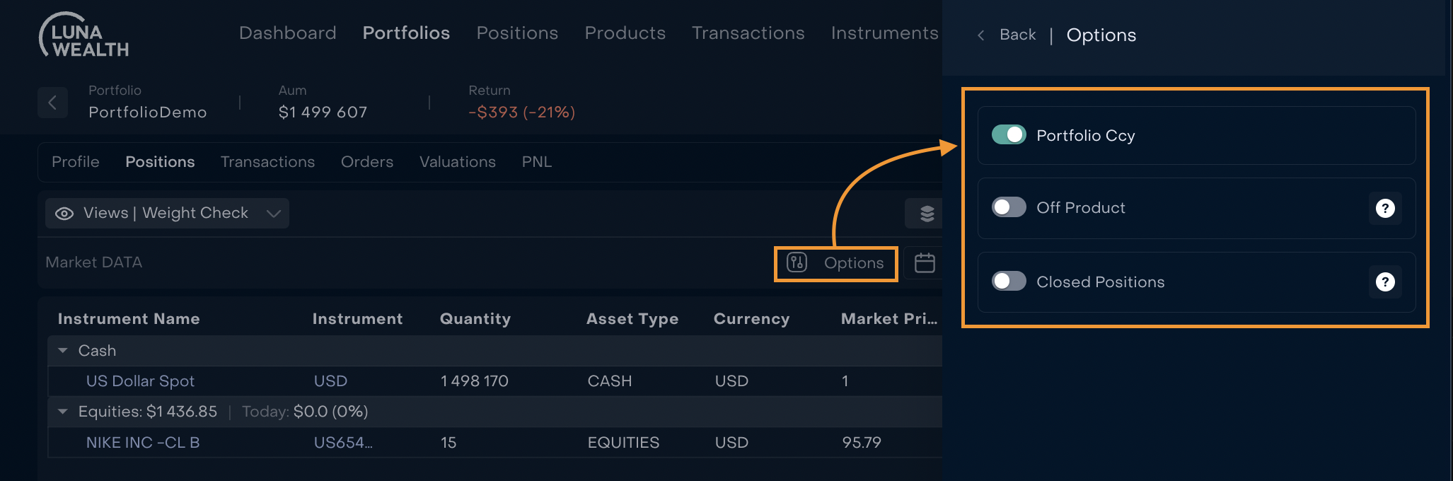 Added options for advanced calculation of Portfolio’s positions: