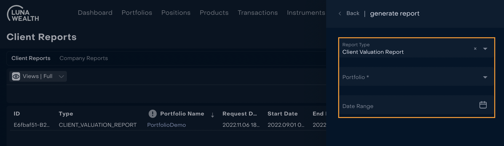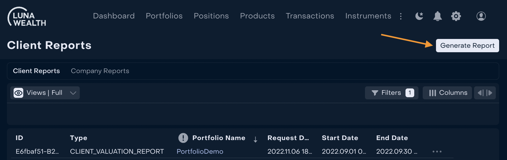 All settings for Client and Company Reports are available by click on button "Generate Report".