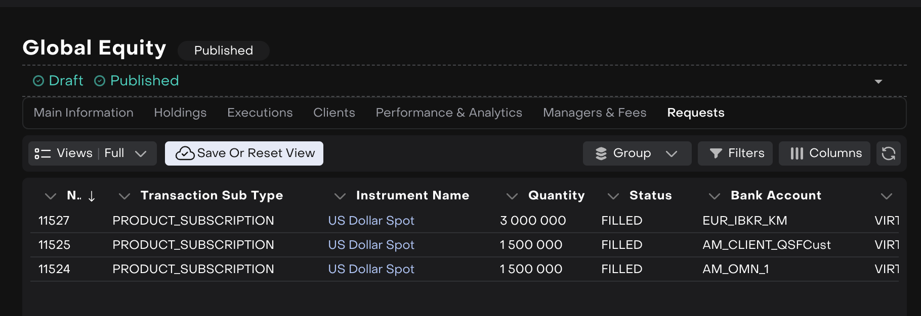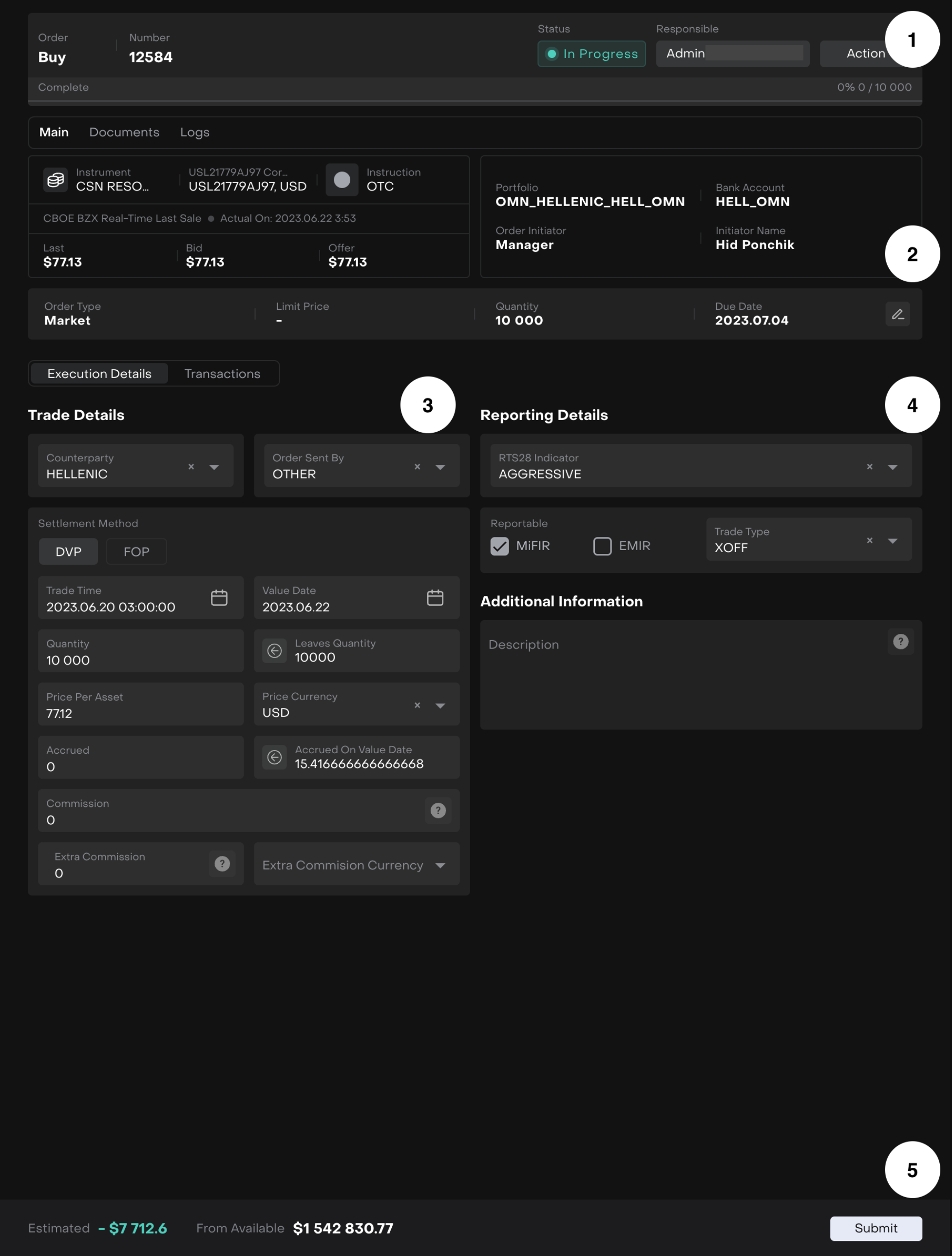 If a user has an open order form and the status (changes from Pending Approval → to any other status), quantity, order type, limit price or a due date of order changes, the system alerts about it and the user can open an updated form.