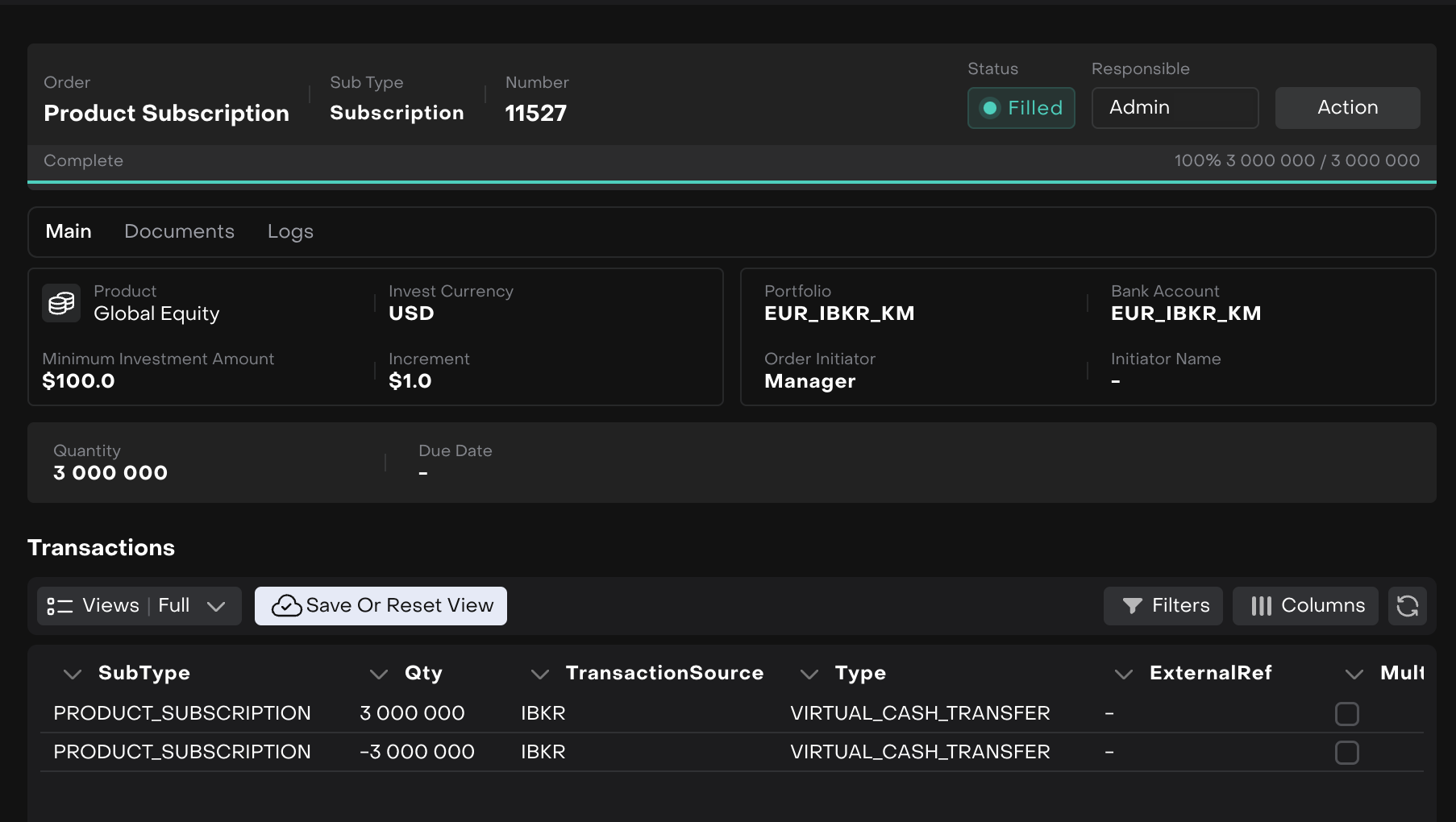 Subscription Order execution form