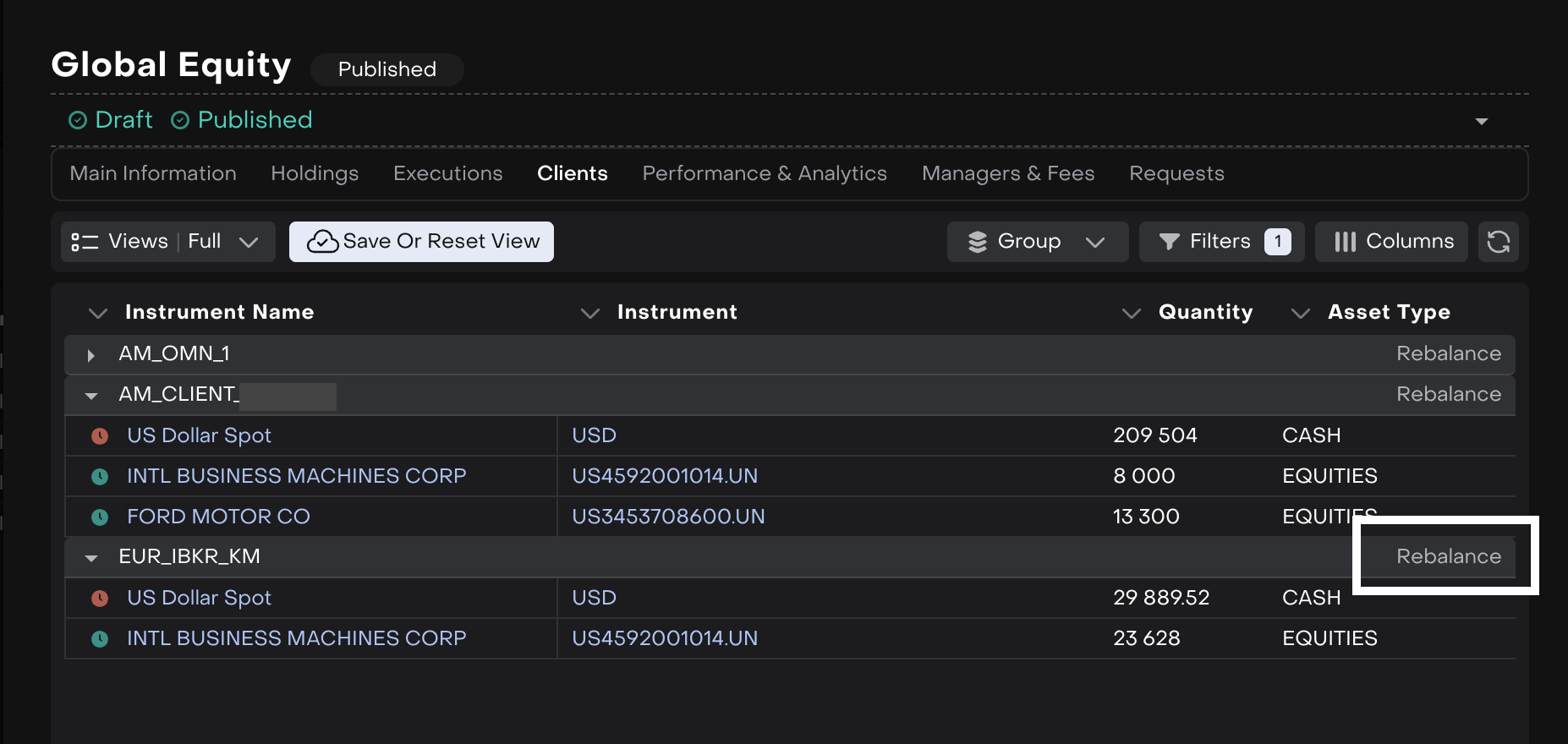 3. Start rebalancing by the single bank account to place orders according to the holdings