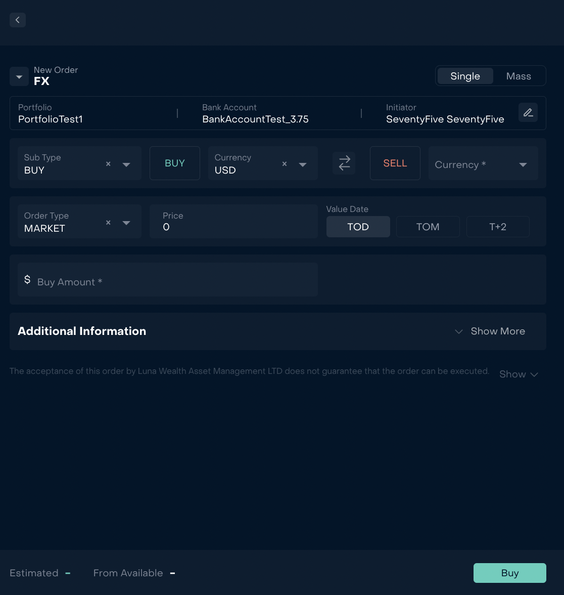 Added FX order auto fill bank account when form is opened via click on the position