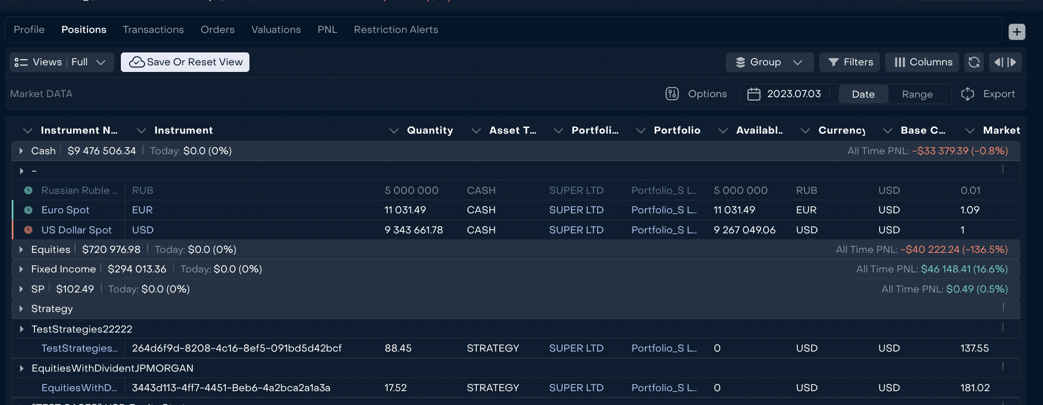 Added Position grouping with detailed information on Strategy holdings