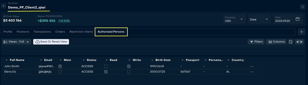 Added Authorized Persons table on Client Portfolios