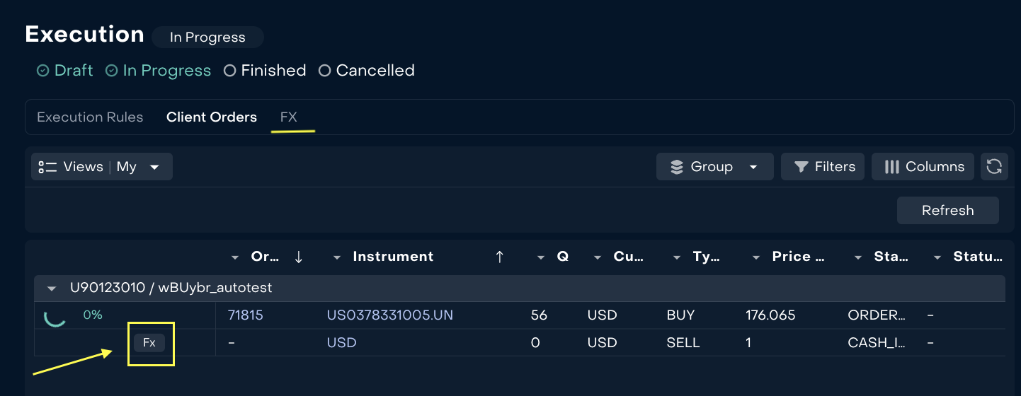 Added FX order tab and refresh button for Strategy execution