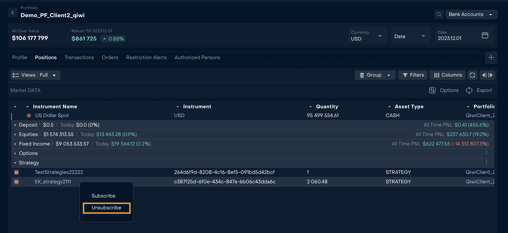 Added unsubscribe flow for Strategy:
