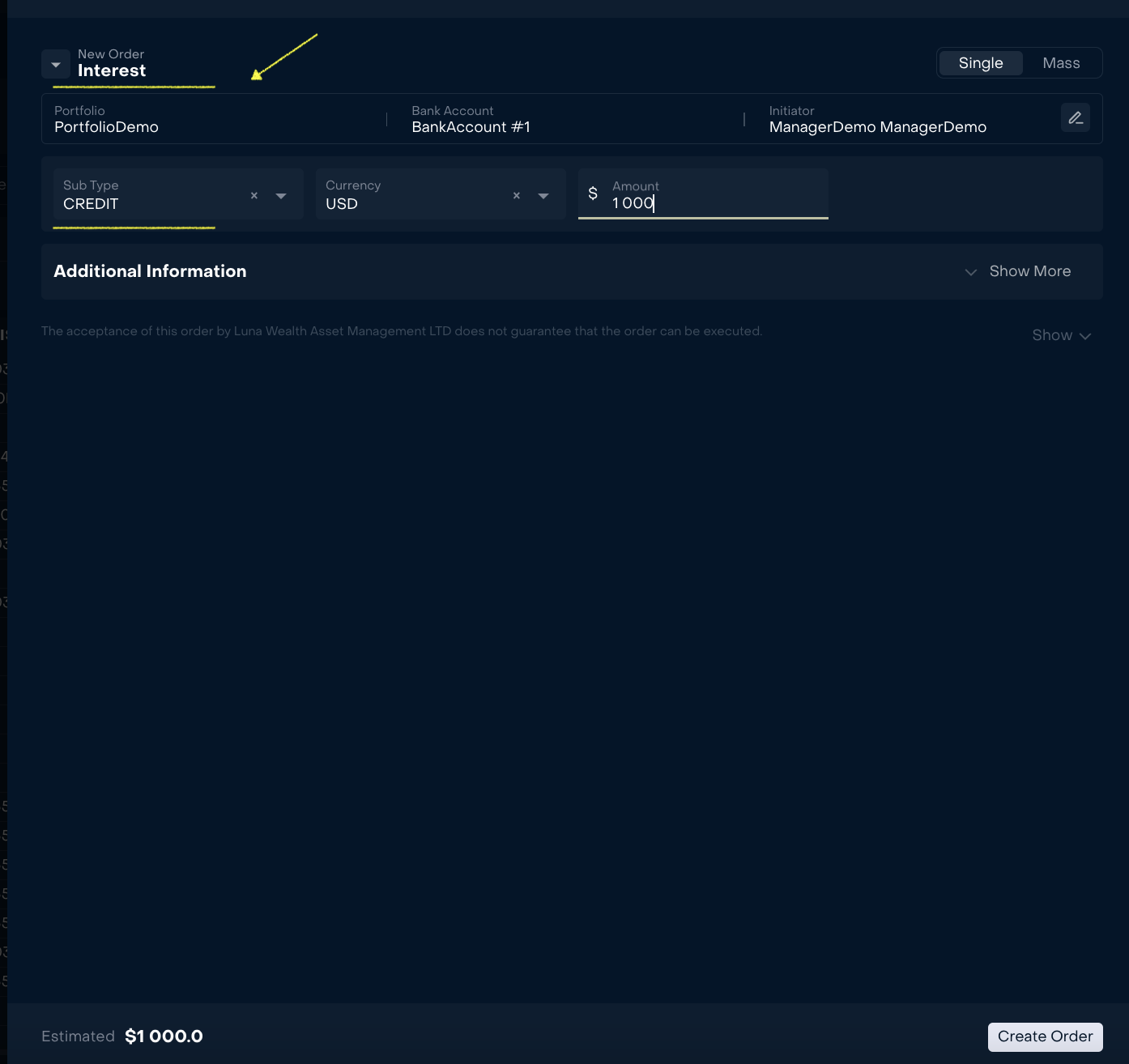 “Interest” order (single, mass/omnibus forms). The order belongs to the group of non-trading orders. Read more Non-Trading Order
