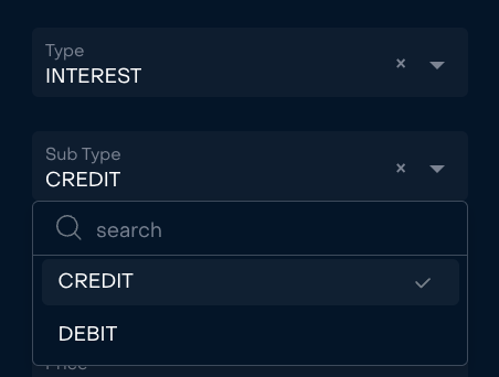 Transaction “Interest” with subtypes “Debit” or “Credit”.