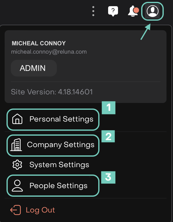 Company Settings â Includes tabs like Site Information, Logo, Companies (Only visible if you have access to at least one of these tabs).