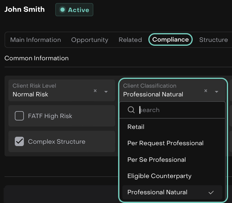You will now see a new option âProfessional Naturalâ available under Client Classification in the Account details. Use this to better categorize your clients in line with evolving regulatory or internal needs.