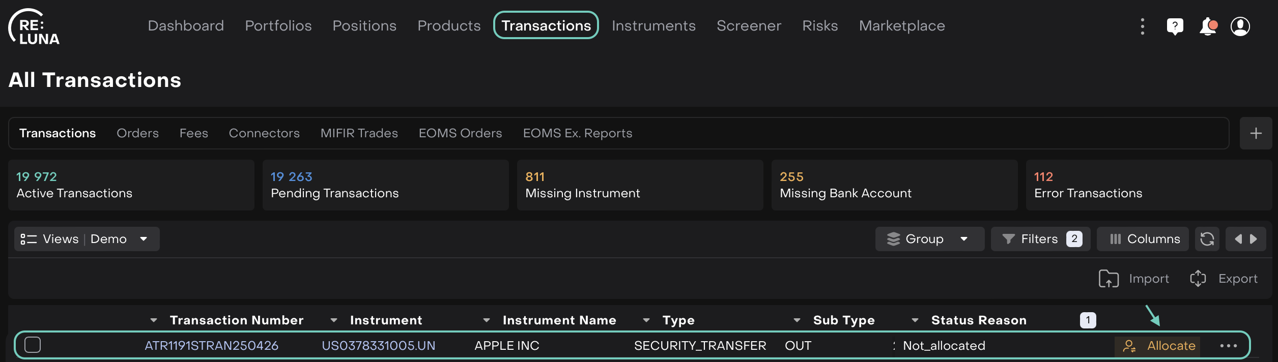 In daily post-trade workflows, not all transactions can be matched automaticallyâespecially when dealing with complex accounts like OMNIBUS, TTCA, or custom allocation rules. To make it easier to spot and handle these cases, weâve added logic that highlights transactions requiring manual allocation