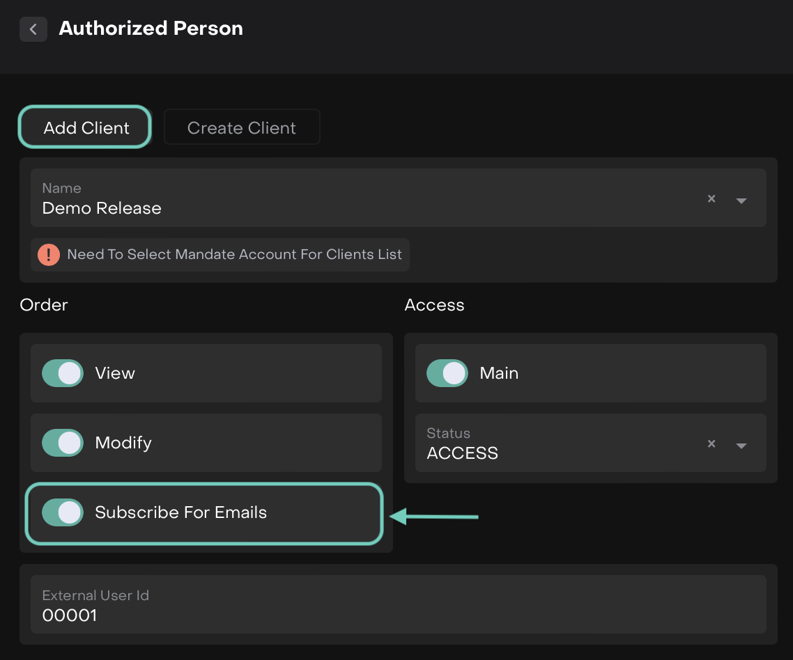 Now, add or edit Authorized Persons from Mandate or Portfolio and subscribe them to receive reports by email.