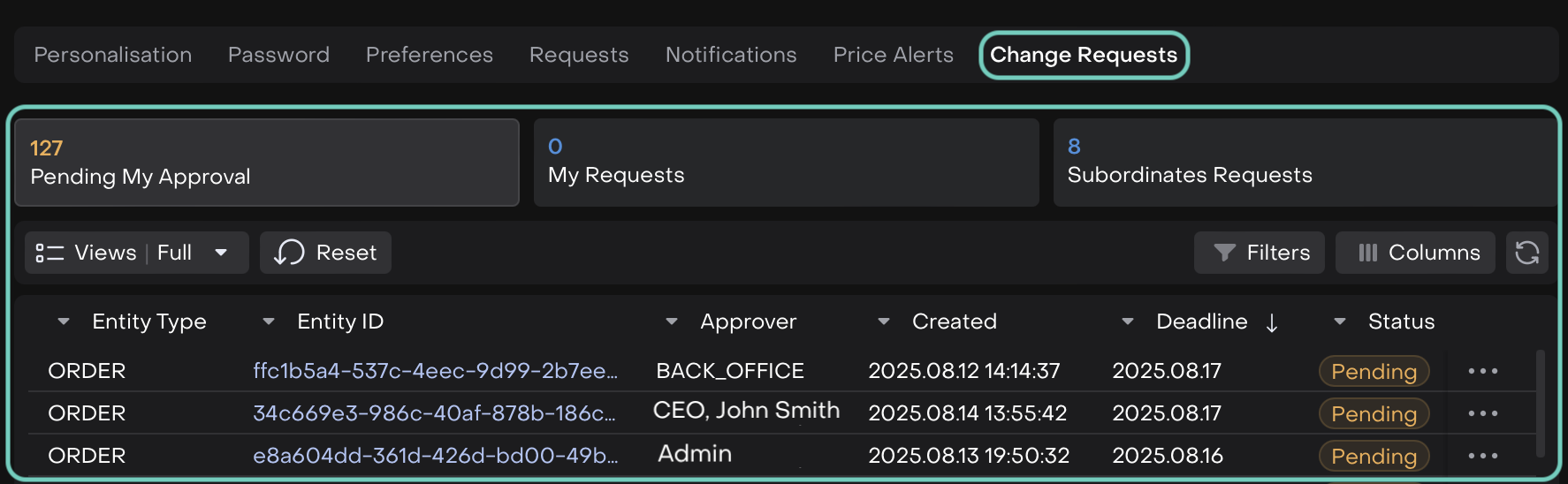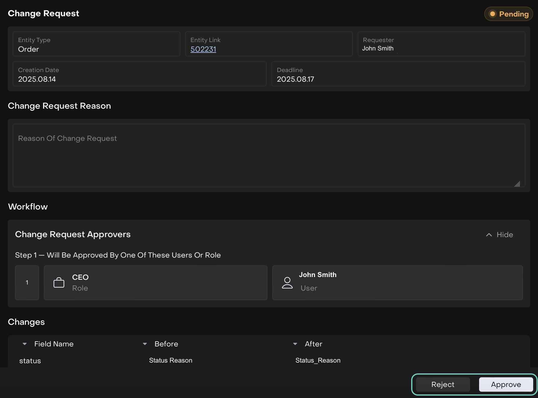 You can now approve or reject requests, track pending Change Requests on a single screen.