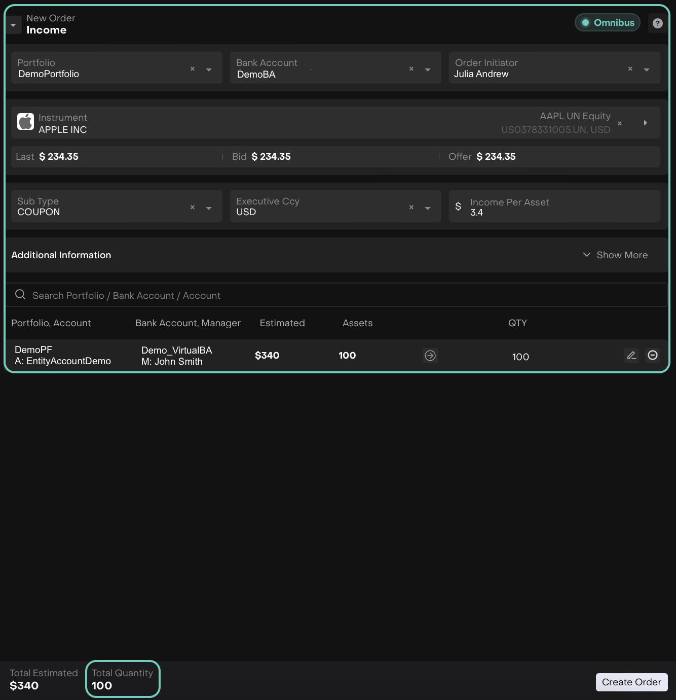 When creating from Portfolios > Positions > New Order