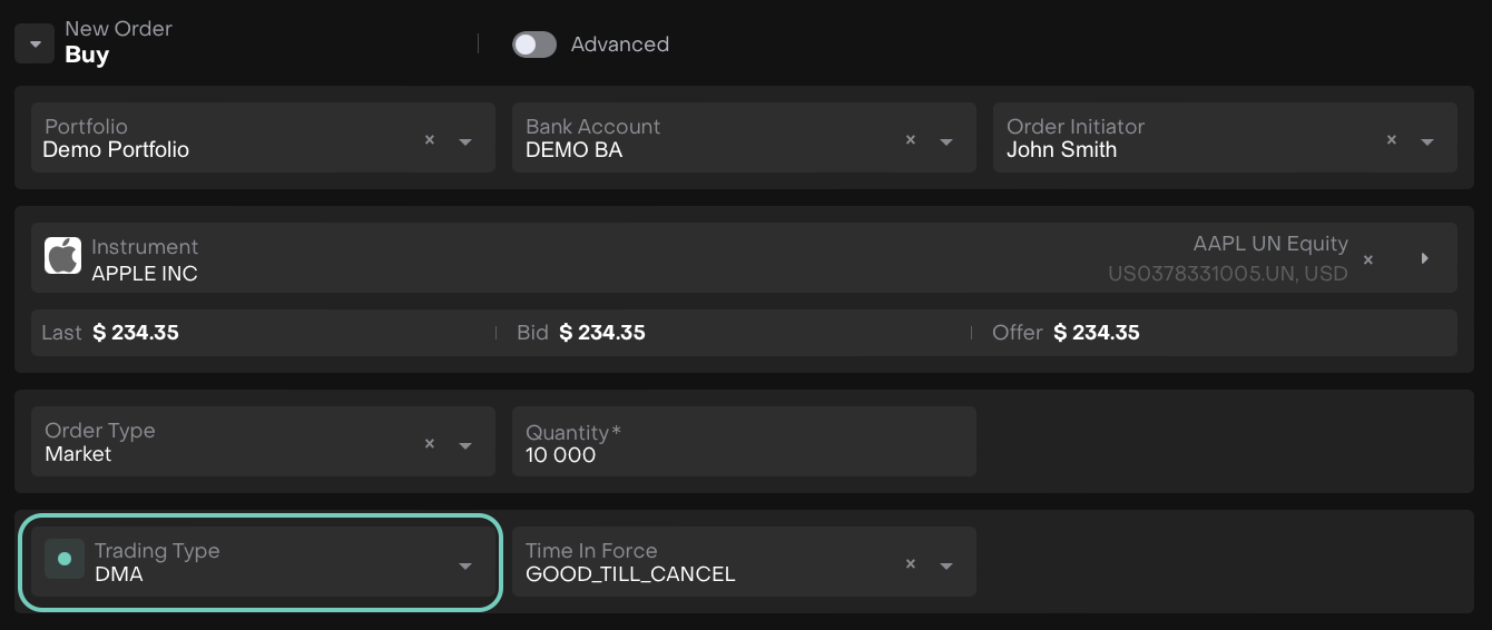 When creating a new order, either by right-clicking on a position or through New Order creation, the DMA trading type will now be set by default if it’s available.