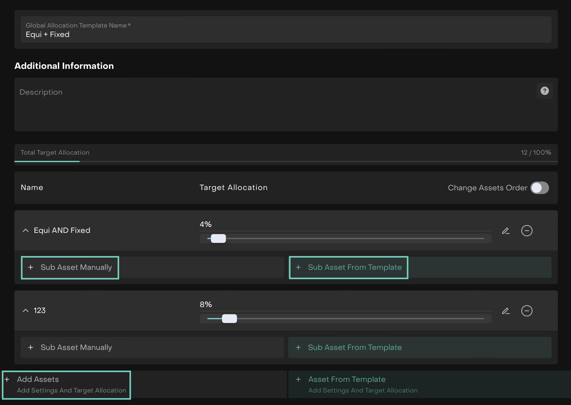 Updated terminologies in the Global Allocation Templates tab by renaming "tag/subtag/tag extension" with "asset/subasset/asset extension".