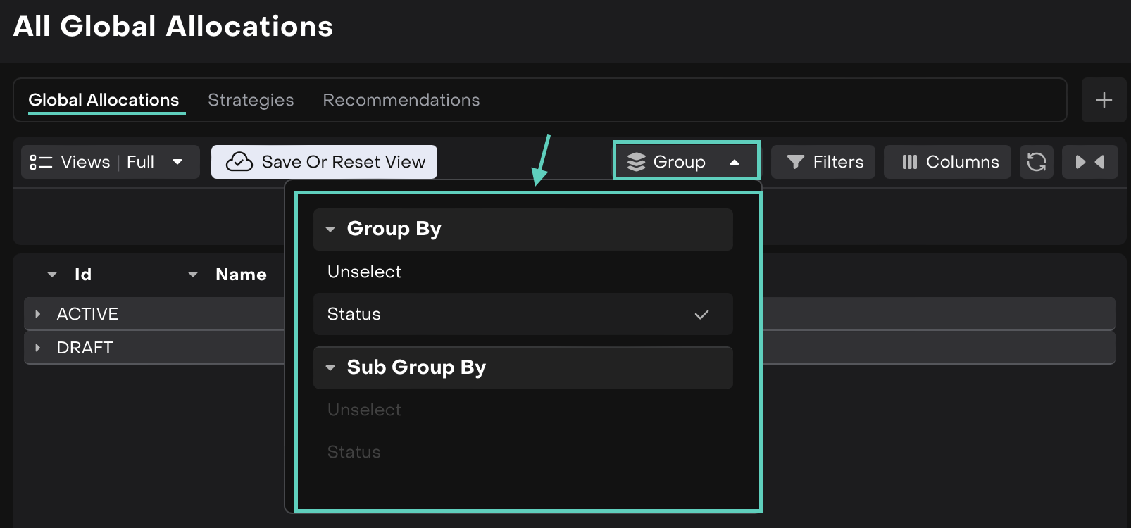 Added Grouping Feature in Global Allocation Table (Product Screen)