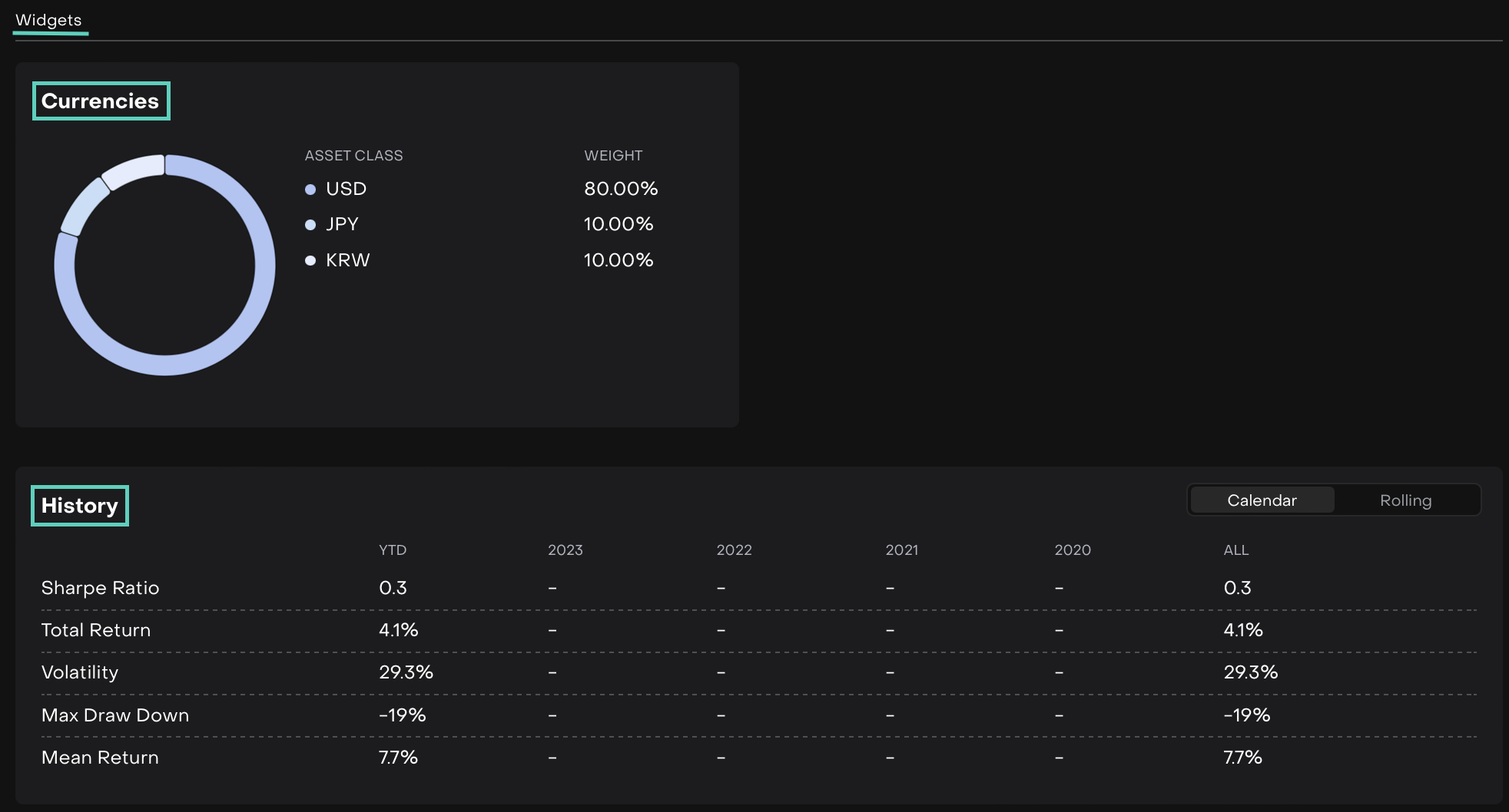The following widgets are added on Marketplace: Currencies, History, Regions, Sectors and Fixed Income.