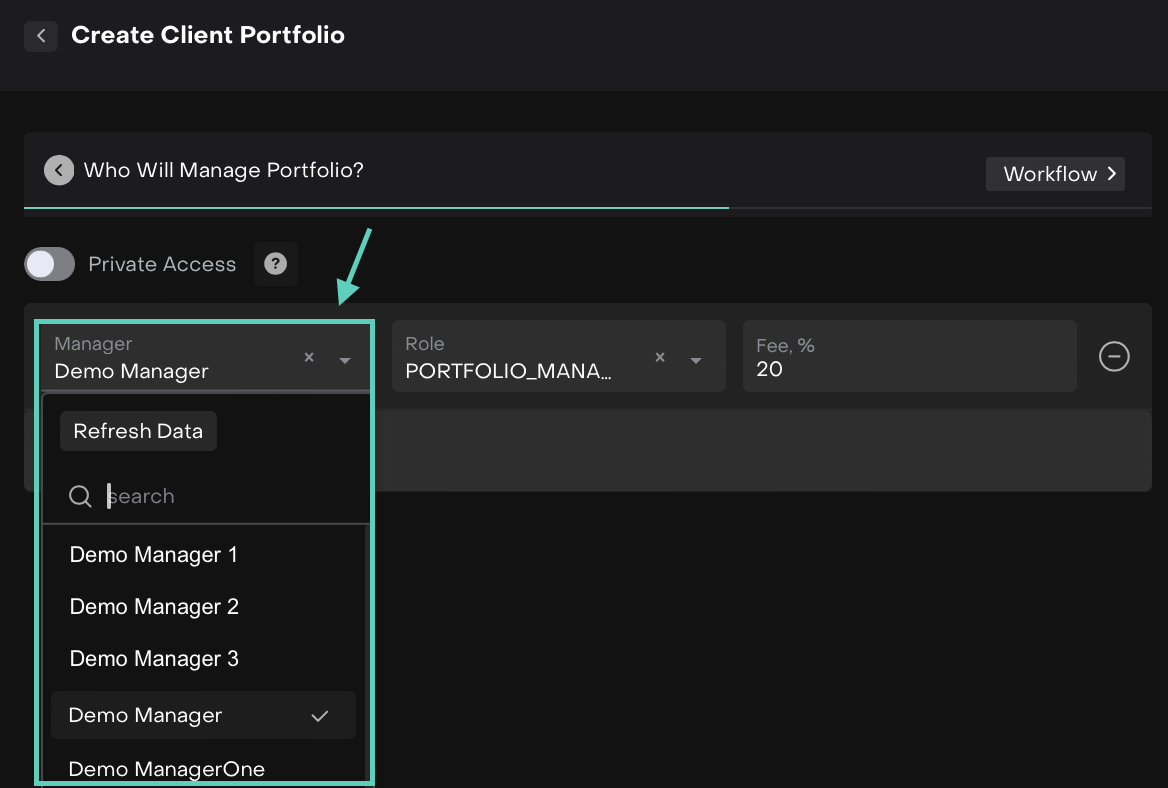 When creating a new Client Portfolio, Manager and Mandate are now filtered based on the Company selected in the previous workflow step.
