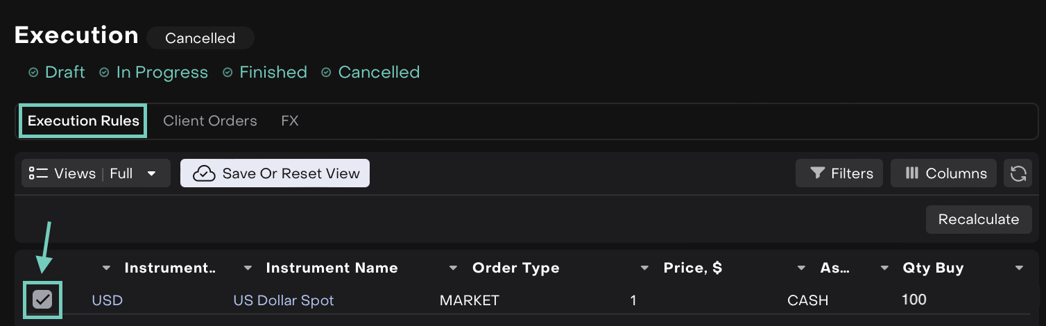 On the Execution Rules screen, all relevant assets are presented with checkboxes for easy selection. Now, have the flexibility to select/unselect any assets that you wish/do not wish to Recalculate.