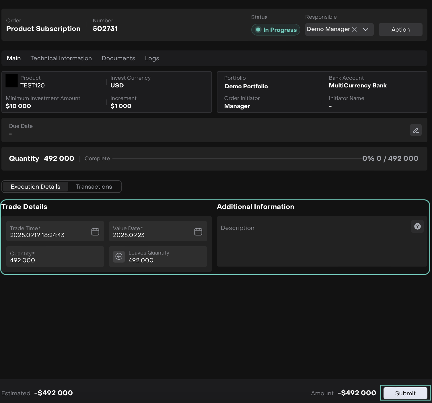 Then, click Buy. Reconfirm the order creation by clicking on Create or Close to go back.