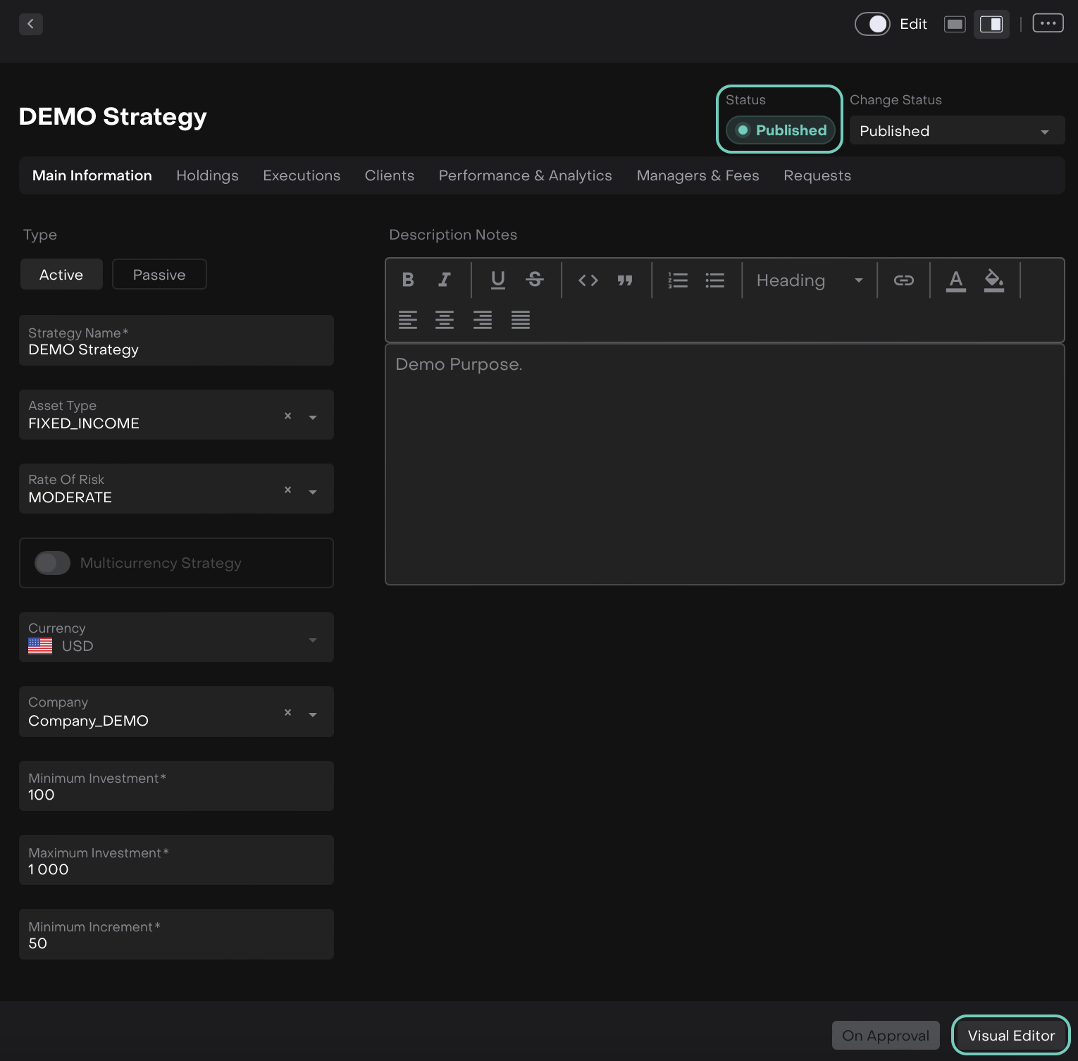 Clicked On Approval button the strategy gets Published and it becomes active.