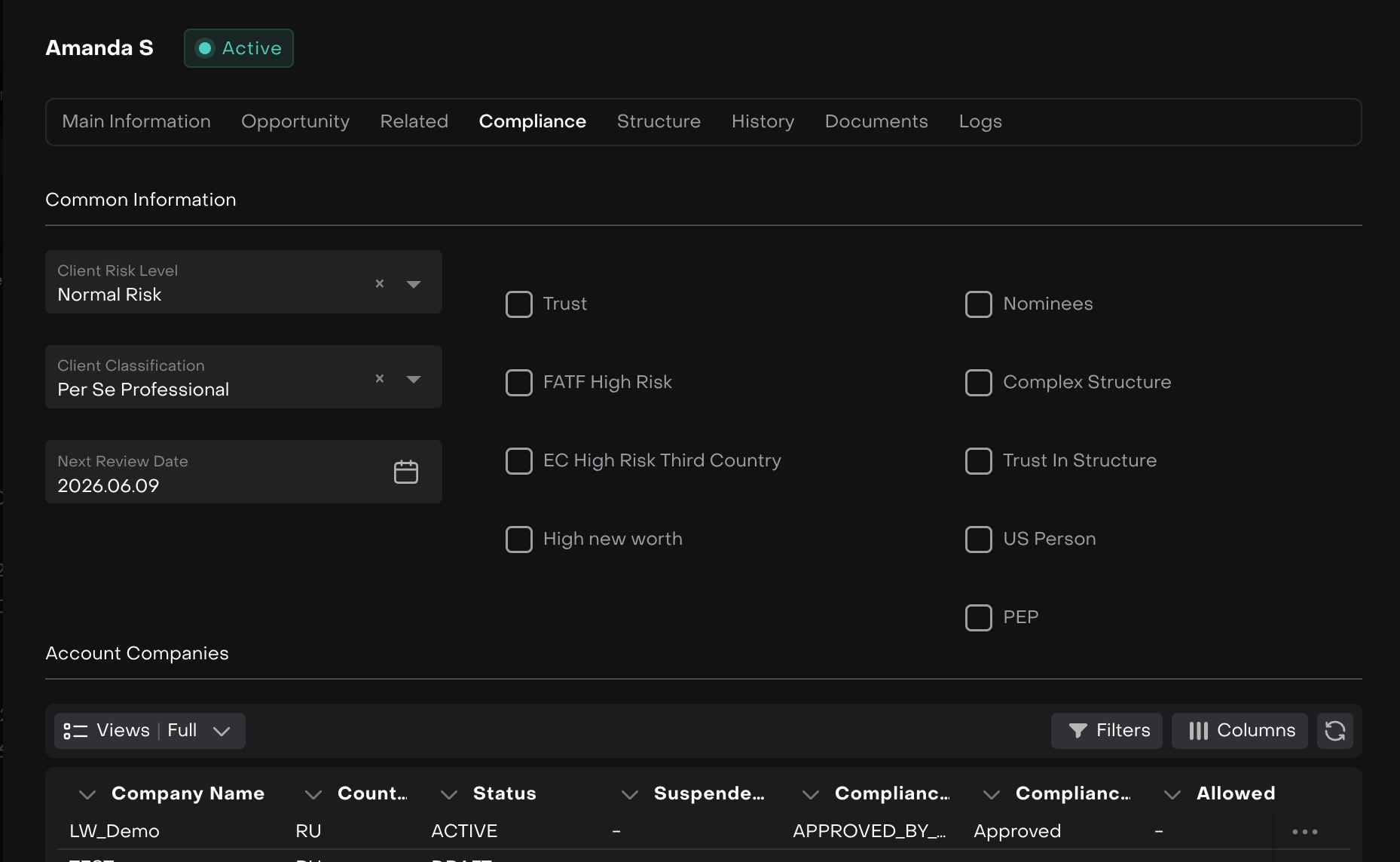 Compliance | Responsible for ensuring the company's compliance with legal and regulatory requirements, monitoring adherence to internal rules and procedures. | VIEW BY COMPANYMODIFY BY COMPANY | VIEW BY COMPANY | VIEW BY COMPANY CREATE MODIFY BY COMPANY | VIEW BY COMPANY CREATE | VIEW CREATEMODIFY | VIEW BY COMPANY CREATE |