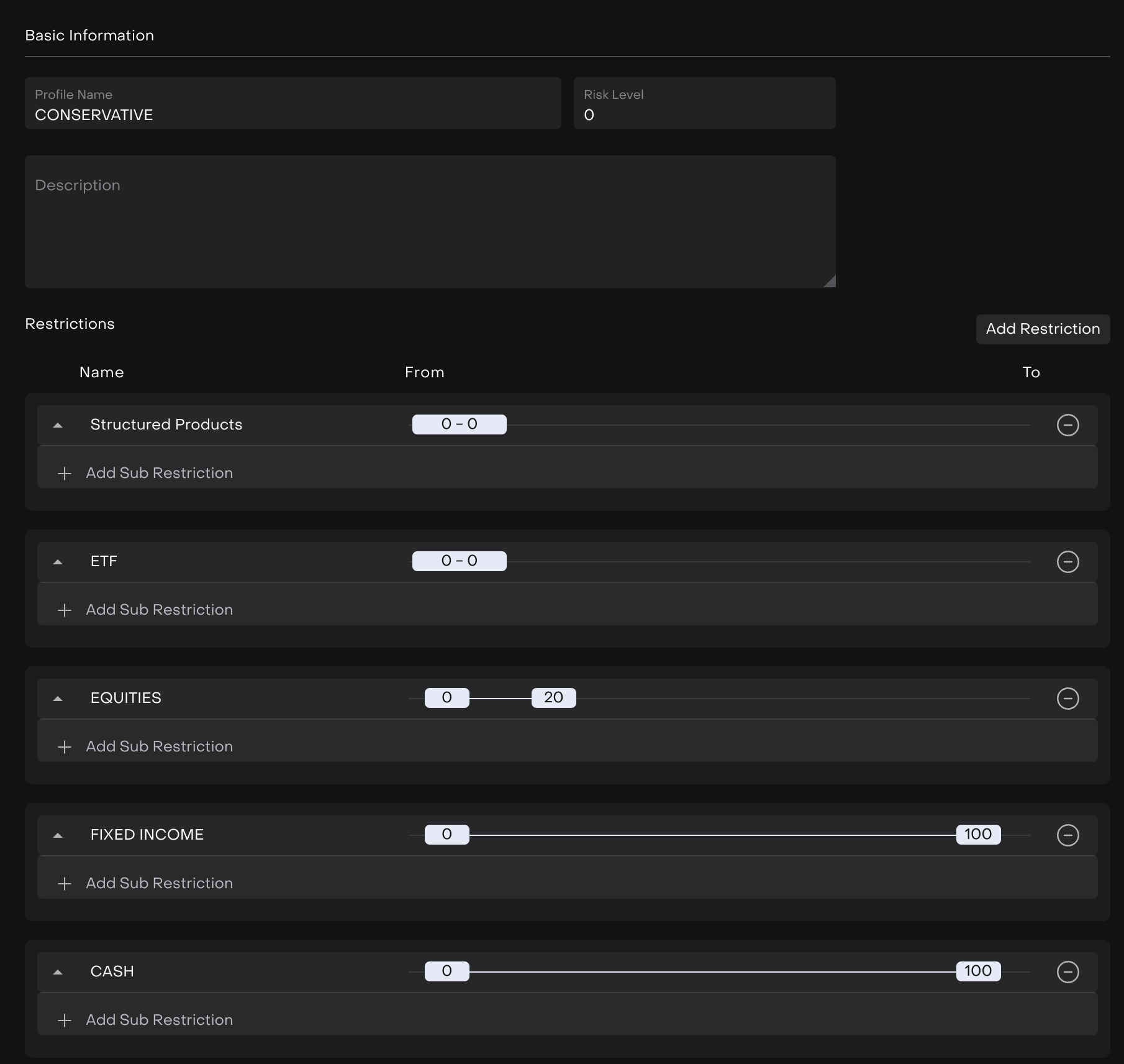Role | Description | Accounts | Portfolios | Transactions | Orders | Risk Profile, restrictions | Reports |