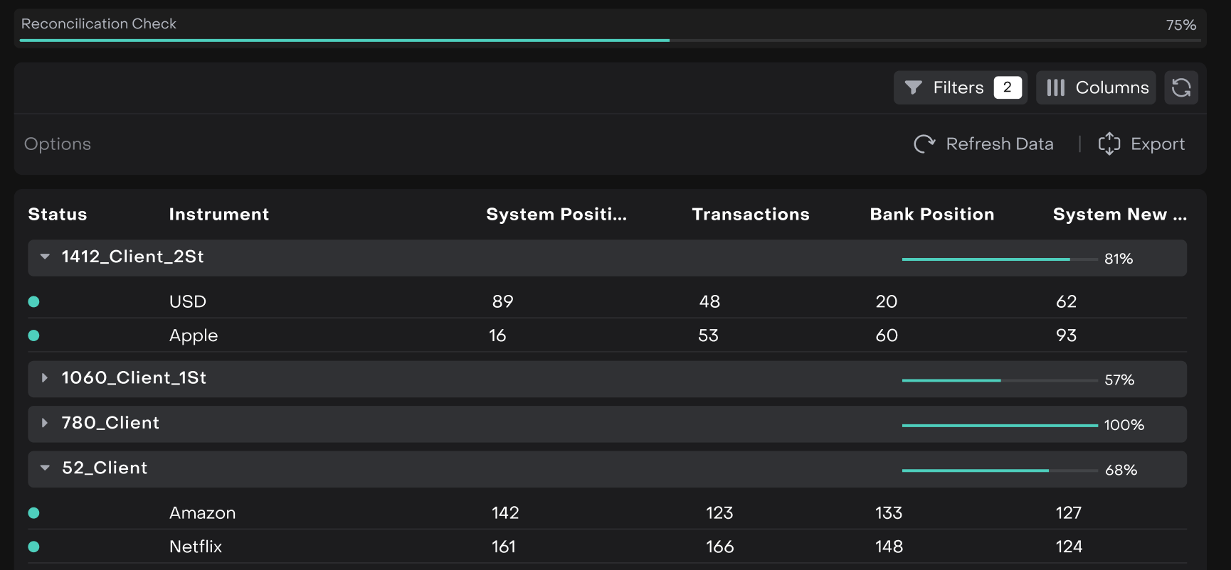 Head of Back / Middle Office | Responsible for handling post-trade activities and ensuring the smooth processing and settlement of transactions. The primary focus on tasks related to record-keeping, accounting, compliance, and administrative functions. | VIEW BY COMPANYCREATEMODIFY BY COMPANY | VIEW BY COMPANY CREATE MODIFY BY COMPANY | VIEW BY COMPANY CREATE MODIFY BY COMPANY | VIEW BY COMPANY CREATE MODIFY BY COMPANY | VIEW | VIEW BY COMPANY CREATE |