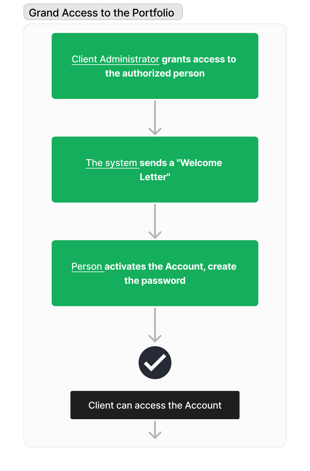 Client | An Individual who has been granted the authority to view or manage the client's portfolio within agreed-upon parameters. | VIEW RELATED | VIEW RELATED | VIEW RELATED | VIEW RELATED CREATE RELATED MODIFY RELATED | - | VIEW RELATED |