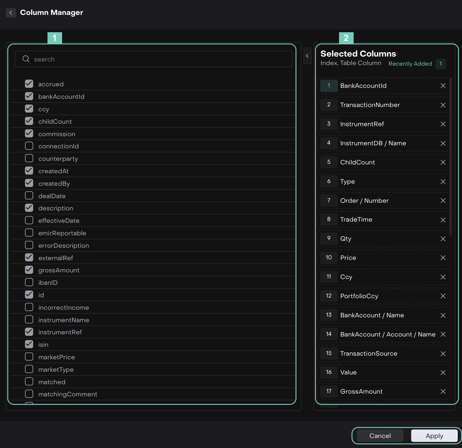 The Advanced Settings on Transactions give you full control over how your transactions are displayed and managed. Using these options, you can organize, filter and customize your transaction table to focus on what matters most to you.