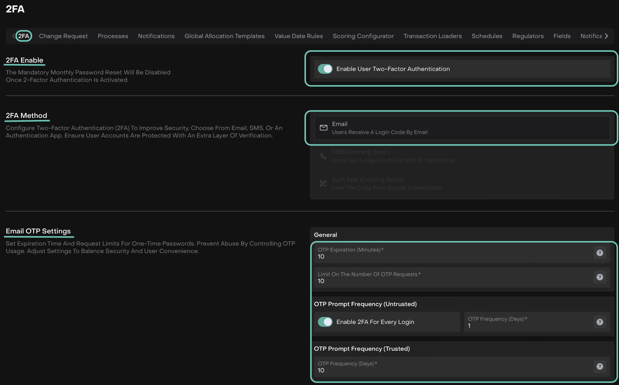 OTP Frequency (Trusted) | The number of days an OTP session remains valid on trusted devices before re-authentication is required. |