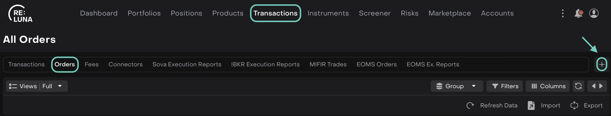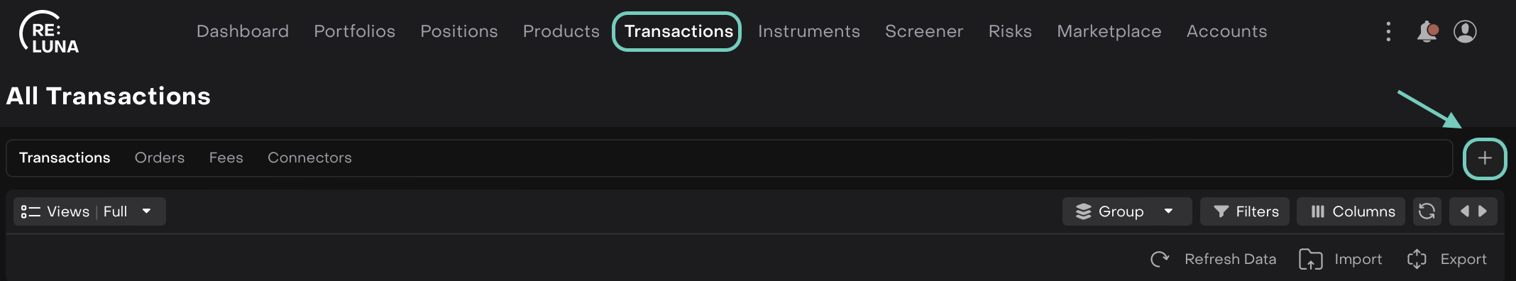 Go to Transactions tab on the Dashboard.