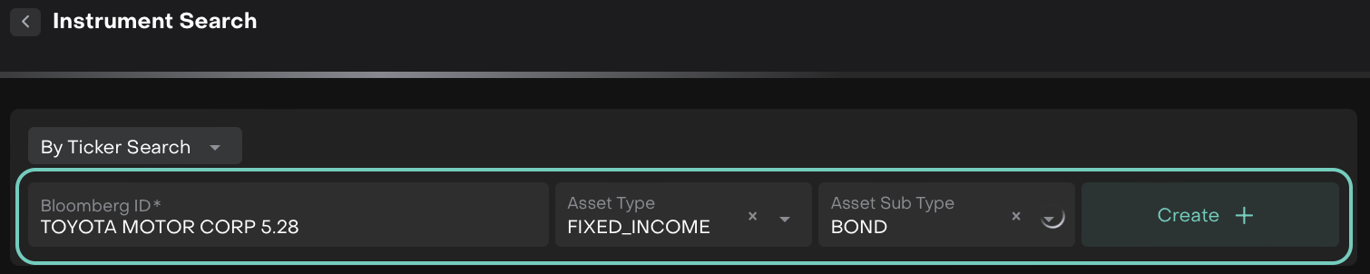 Enter the Instrument(*) field by searching with Internal/External/By Ticker.